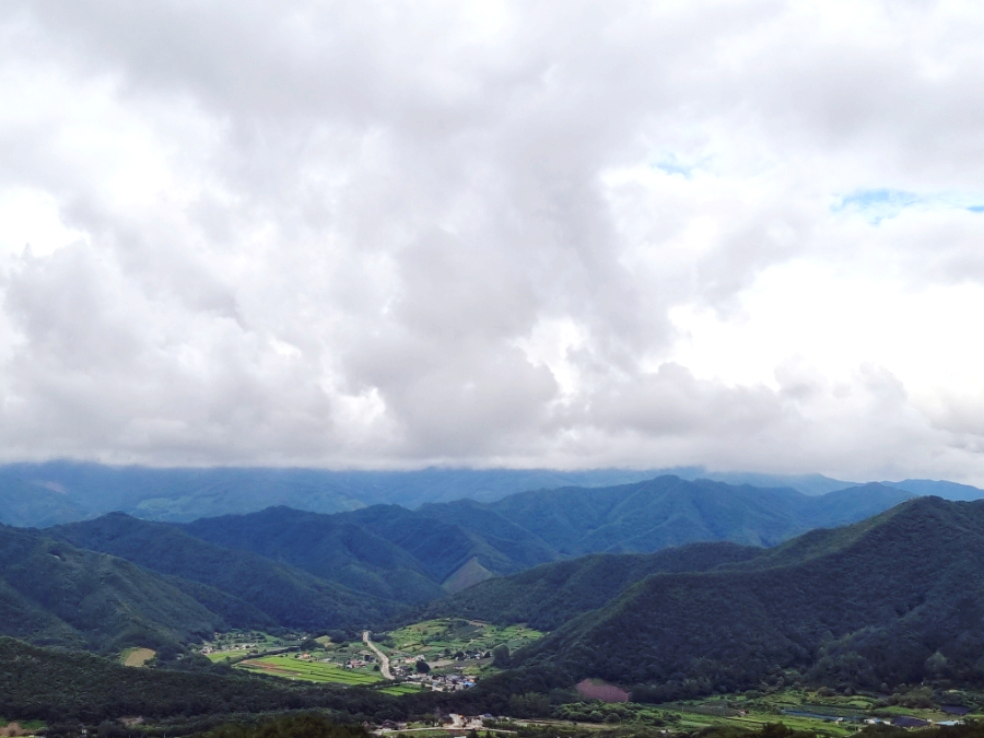 산에 둘러쌓인 마을.