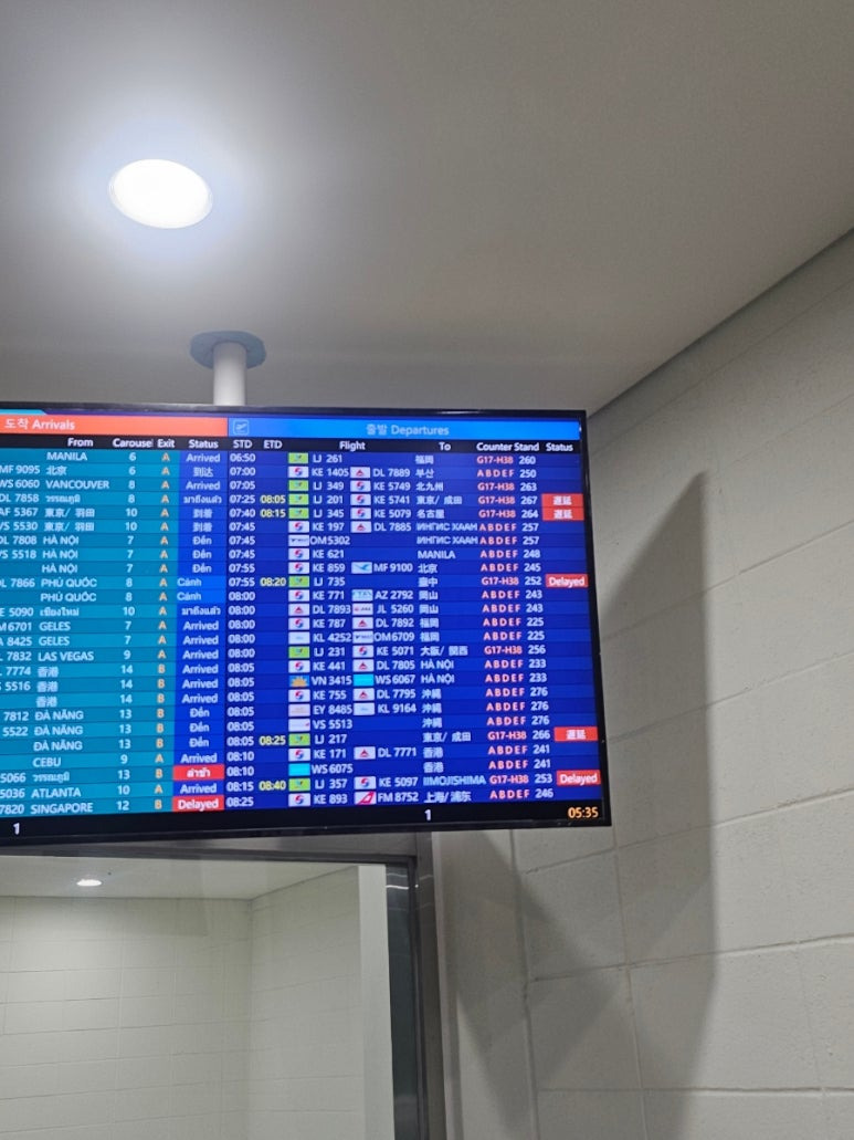 7시55분이었던 비행기가 8시20분으로 지연 ㅜㅜ
